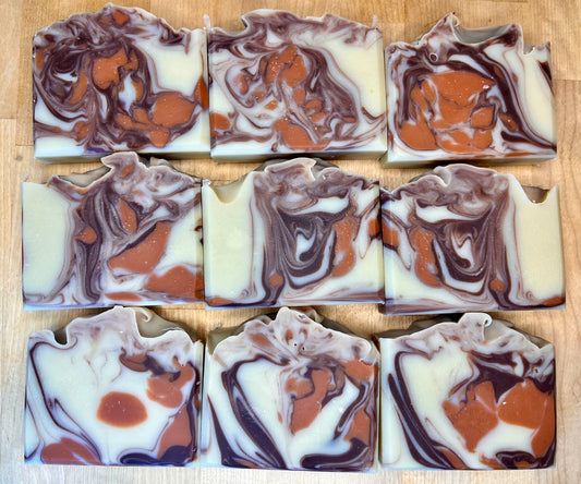 “All-natural” here means 100% pure essential oils (never any phthalates, parabens, animal by-products or toxic ingredients) plant oils (organic whenever available), and colors sourced from plants, natural oxides, and clays.