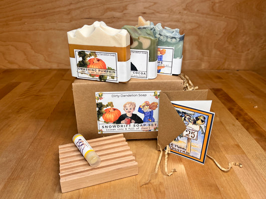 3-Soap Holiday Gift Box 'Snowdrift Soap Set' with Lip Balm, Card, & Hardwood Soap Dish ($40 value)
