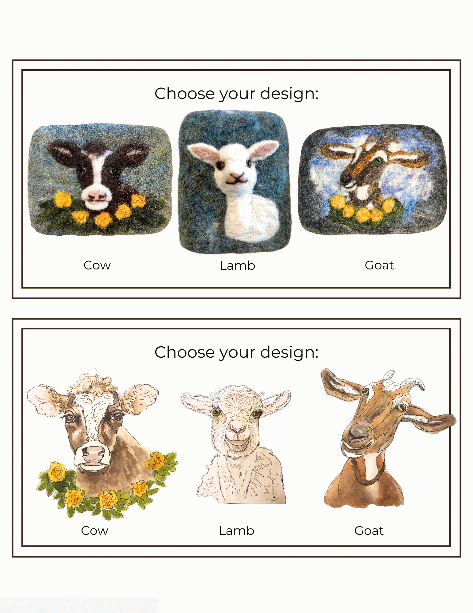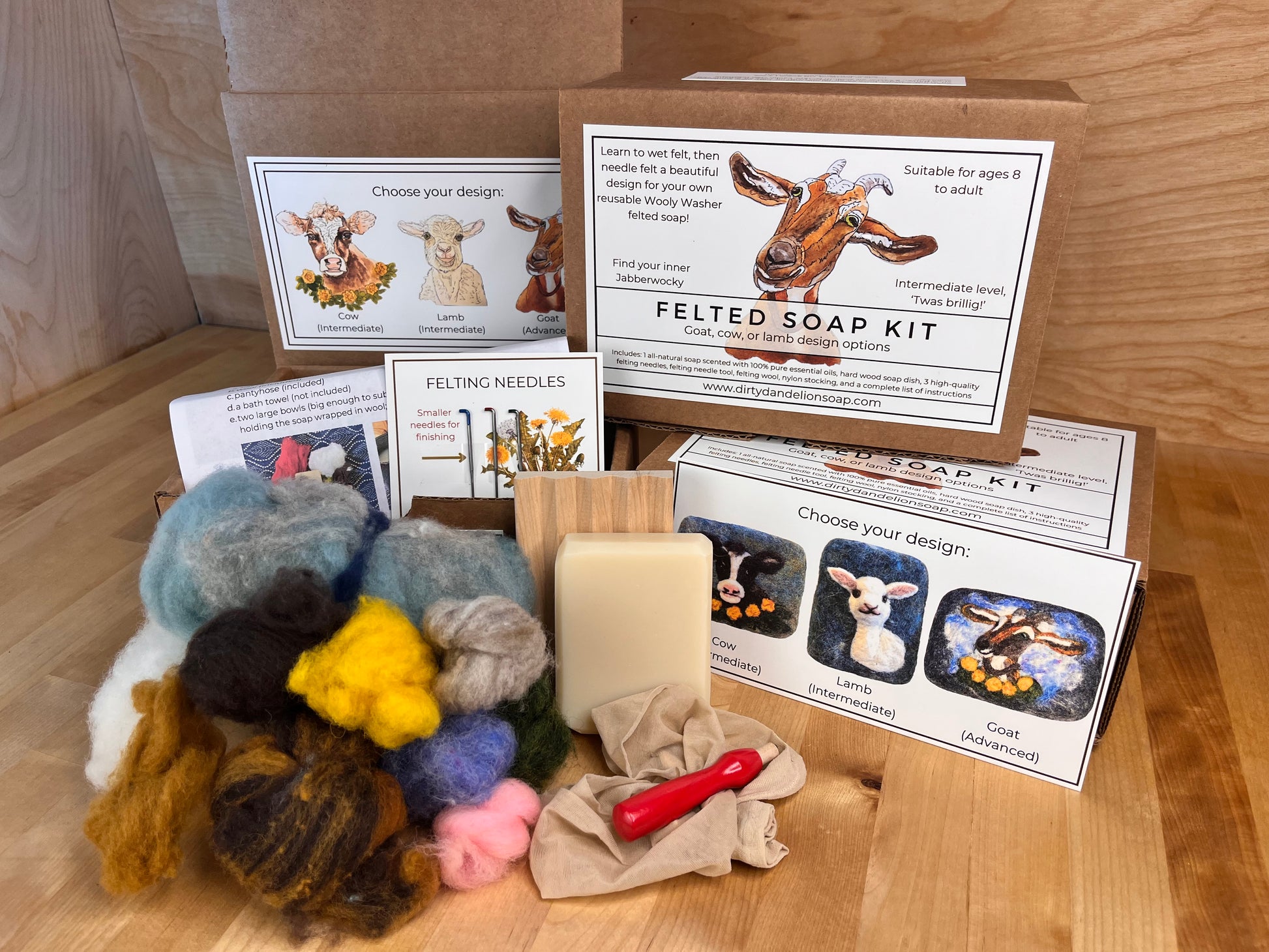 This is a perfect gift for the crafty human in your life. With this kit you will learn to wet felt a soap, then needle felt a design on the front of your soap. Appropriate for ages 8 and up.