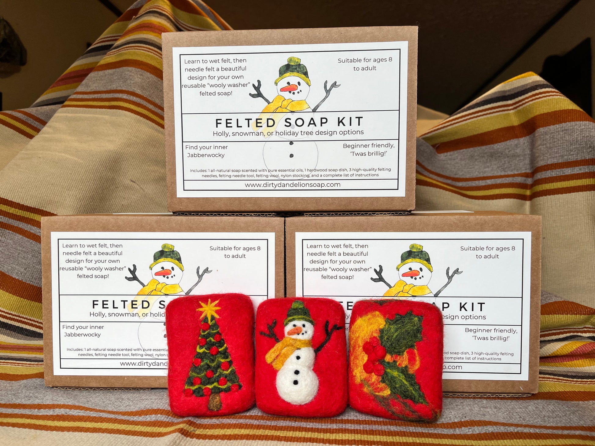 Felted Soap Kit (Snowman, Holly, & Christmas Tree)